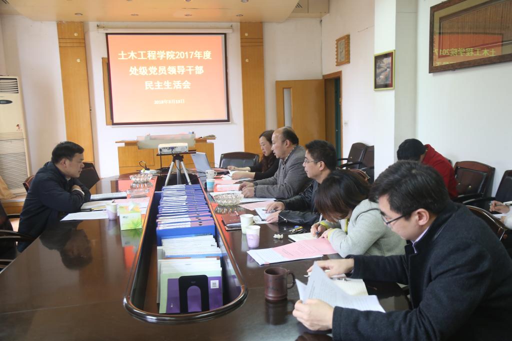 3月13日下午,土木工程学院在三楼会议室举行2017年度处级党员领导干部民主生活会。校党委书记王汉青全程参加此次民主生活会并作指导。土木工程学院党委班子全体成员参会,会议由院党委书记陈振富主持。
