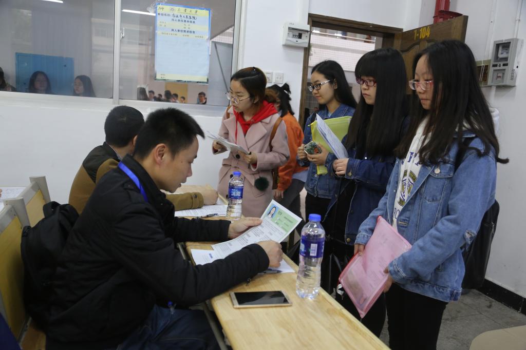 会场秩序井然、各项工作开展顺利,据学校招生就业处相关负责人介绍,今年的春季供需会采取“分类举行,学院承办”的方式,分两场分别举办医药卫生类,文管经法类、土木环安类、核资类供需见面会,所涉及岗位数量多、种类繁、门槛各有高低,为不同学历、不同专业的同学提供了一个更为广阔的就业服务平台。另外,会务组在现场设置了广播服务台、学院咨询服务台、志愿服务台等服务平台为到校企业与应届毕业生提供更为便利的服务。