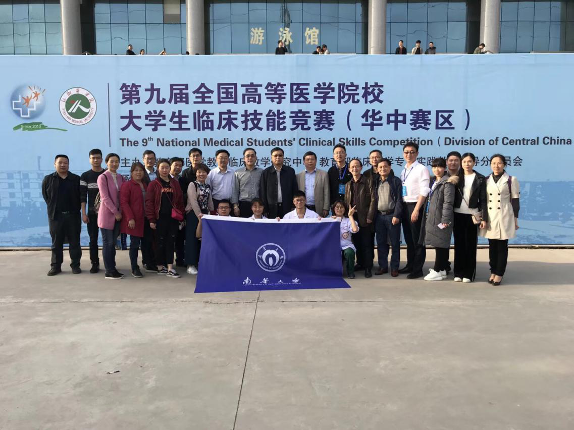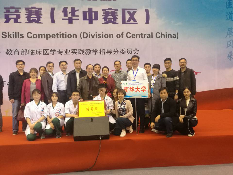 4月15日,第九届全国高等医学院校大学生临床技能竞赛华中赛区比赛在河南新乡医学院举办,来自华中赛区的20所高等医学院校的80余名选手同场竞技,激烈比拼。最终,由我校附属南华医院培训的2013级临床医学专业学生何家宝、谢姣、孙梦玲、梁巨波等4名参赛队员以及候补队员潘小高、邓俐斯、蒲叶、曾子航组成的36365路检测中心临床技能代表队荣获本次竞赛特等奖,晋级全国总决赛。