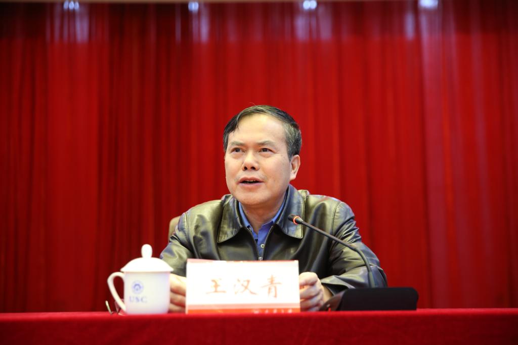王汉青谈到,第三次党代会以来,学校党委全面贯彻党的教育方针,认真落实立德树人根本任务,提出了“一基三实、一路三建”发展思路,并将“带着爱做好教学、管理和服务工作”作为南华师德师风建设的指导思想。在这一思想指引下,学校瞄准“一流本科”和“双一流”建设目标,以“本”为本,开展了全校范围内的本科教育思想大讨论,实施了船山人才工程和放心课程库建设,建设“金课”、淘汰“水课”; 大力营造了“崇尚学术、尊重人才”的浓厚氛围,构建了“南华名师”“十佳优秀教师”“十佳优秀教育工作者”“十佳优秀共产党员”等教师荣誉体系。为服务国家创新发展战略,对接地方经济社会发展瓶颈问题,学校在东莞、上虞、诸暨、长沙等地建立了四个创新研究院,创新研究院既是产学研用和协同育人的重要基地,为学校广大教师搭建了实践教学、科学研究和成果转化的平台。