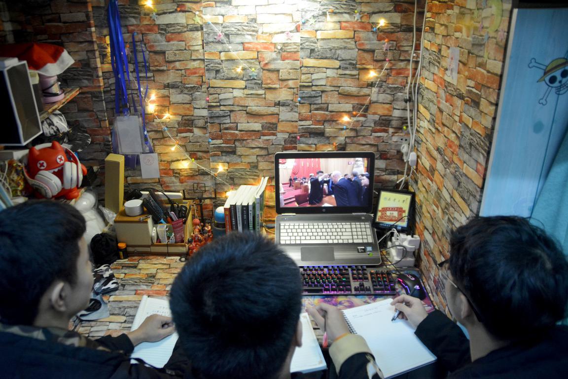 校党委理论学习中心组在西苑办公楼视频会议室集中观看大会盛况并组织学习讨论。各二级党组织在本部门会议室收看了大会直播,同学们在宿舍、图书馆、教室收看大会直播。