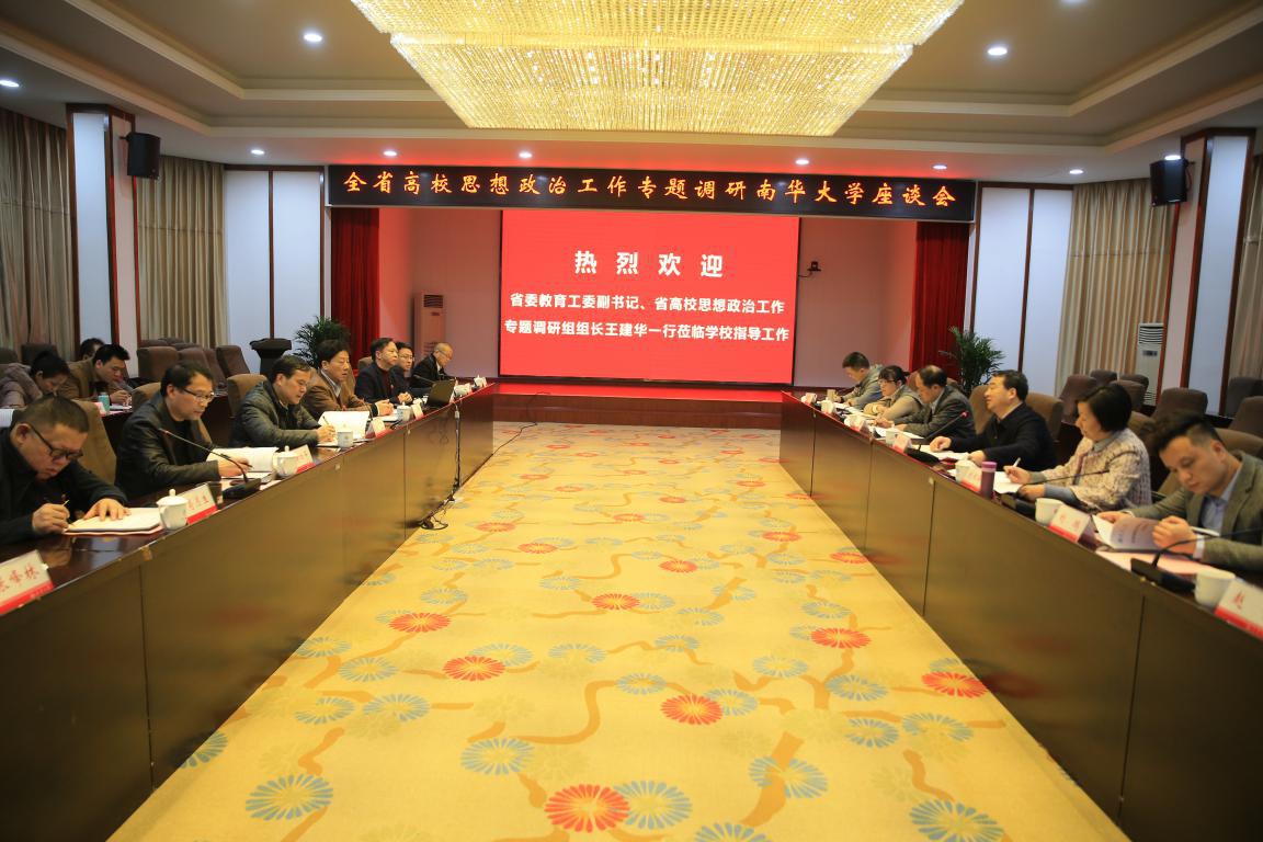 听取汇报后,王建华组长对学校党的建设和思想政治工作以及学校取得的各项成绩给予了高度肯定。他表示,学校新一届领导班子团结和谐、坚强有力、奋发有为,高度重视党的建设工作和思想政治工作,主动思考,主动作为,主动对接国家需求、时代需要,坚持立德树人,强化三全育人,拓展办学空间,强化成果转化,办学质量不断提升,社会声誉和知名度不断提高,取得显著的思想政治工作成效。南华的思想政治工作成绩和经验值得向其他地方高校介绍和推广。