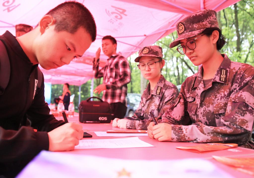 应征大学生代表罗兴福同学在发言中充分表达了自己想用火热的青春激情去书写军旅人生的迫切希望。在随后的征兵宣讲报告会上,李俊、丁黄兴、王旭东、谭晓兵、刘泽宏等5名优秀现役军人和退役军人作为高校征兵宣传形象大使代表为大家作宣讲报告,他们分别从不同角度结合自身从军经历,分享了自己携笔从戎,献身军营的收获体会,号召莘莘学子听从祖国召唤,及时把握参军报国的大好机遇,积极投身军队。