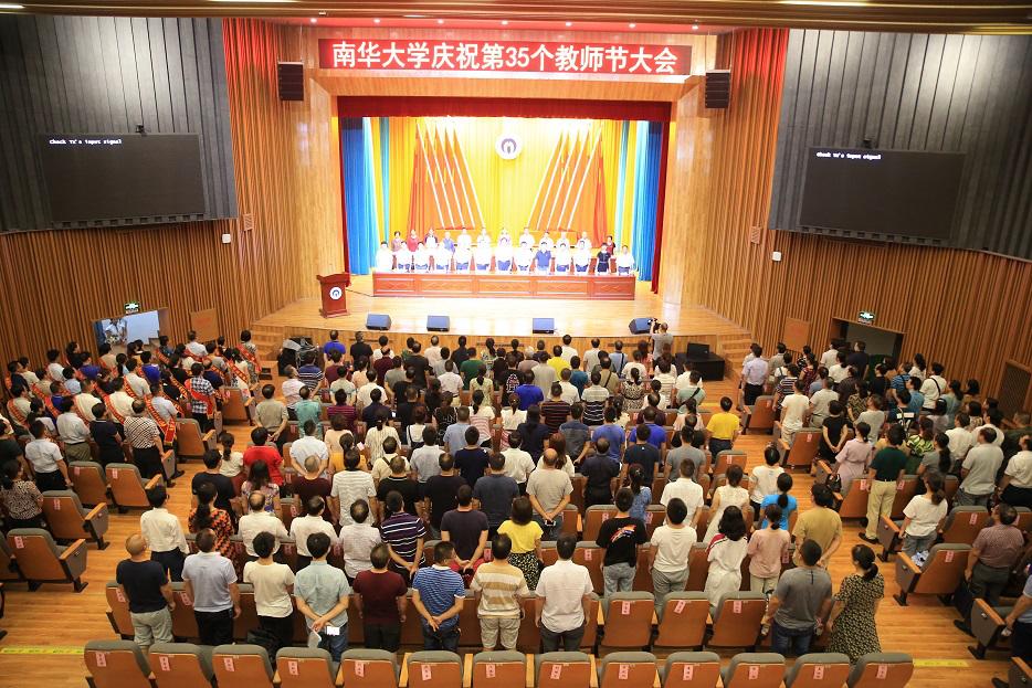 会上,学生代表向历年获省部级以上优秀教师及优秀教育工作者代表献花。副校长唐振平、刘升学、陈国民分别宣读了关于表彰全国优秀教师和全国优秀教育工作者、湖南省2019年度芙蓉教学名师、2019年湖南“最美科技工作者”称号、36365路检测中心第一届“南华名师”、2019年度36365路检测中心“十佳优秀教师”和“十佳优秀教育工作者”等文件。主席台就坐的领导为受表彰的老师颁奖。