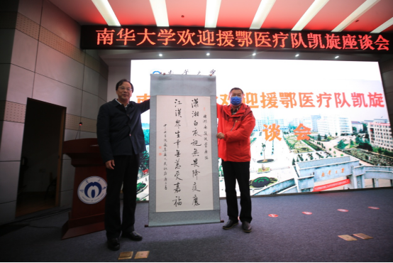 高山首先代表学校党委、行政及全校师生热烈欢迎援鄂医疗队的战士们、勇士们平安凯旋,并向他们致以最诚挚的问候和最崇高的敬意。他说,“你们用坚定的意志、无私的奉献、高尚的医德、高超的医术圆满完成了支援湖北抗疫的光荣任务,为打赢武汉保卫战、湖北保卫战贡献了南华力量,展示了南华形象。”