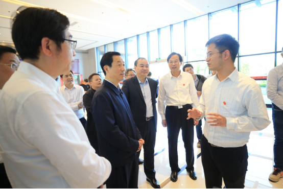 在考察过程中,许达哲询问了学校近期发展的状况,详细了解了学校及合作企业科研攻关、成果转化、产业孵化等情况。他指出,要坚持面向科技前沿、面向国家战略需求、面向经济主战场,完善产学研用模式和机制,为解决关键核心技术“卡脖子”问题、推动供给侧结构性改革、提升发展质量和效益不断努力。