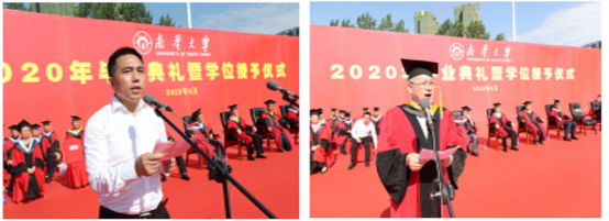 典礼上,校领导和高层次人才代表为2020届十佳优秀毕业生颁奖,为本科毕业生、留学生、硕士毕业生和博士毕业生代表拨穗并授予学位证书。