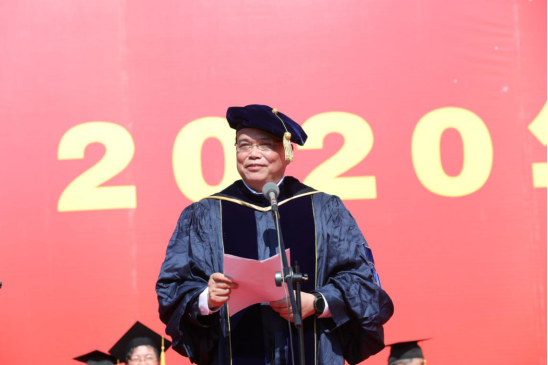典礼上,张灼华校长发表了饱含深情的校长致辞。他结合自己的人生经历和感悟,和同学们分享了几个小故事,以小见大,语重心长寄语毕业生们。他表示,在新冠肺炎疫情特殊年,全国毕业生都面临着不平凡和挑战,但这是一场历练,不要惧怕失败,而要充满信心,以更加坚定的意志面对挫折和挑战。因为每一个挑战背后都藏有机会,最终成功的都是那些足够坚持、足够有信心的人。他还希望毕业生们无论走到哪里都要保持良好的品格,因为人品将很大程度上决定个人发展。他衷心地祝愿所有的毕业生们,在人生新征程上,流年笑掷、未来可期。