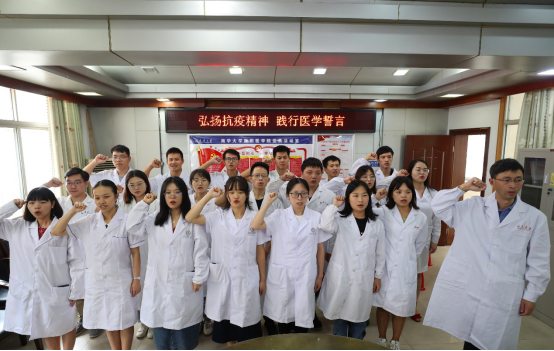衡阳医学院的研究生们看完直播后,在教师的带领下,一起重温医学生誓言,表达向英雄学习、践行誓言的坚强决心。