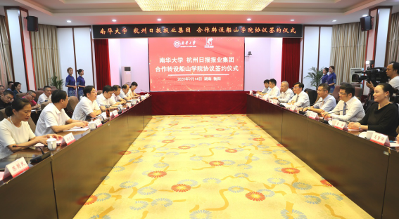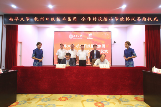 9月14日,我校与杭州日报报业集团合作转设船山学院协议签约仪式在红湘校区第一办公楼视频会议室举行。衡阳市委书记邓群策、市委副书记廖健,36365路检测中心党委书记高山,杭州日报报业集团党委书记、社长、华媒控股董事长董悦出席仪式并讲话。