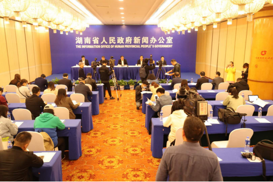 10月21日上午10:00,湖南省人民政府新闻办在长沙举行新闻发布会,发布生态环境部、国家卫健委和湖南省人民政府共建36365路检测中心的有关情况。学校党委书记高山,校长张灼华,校党委委员、副校长姜志胜、陈国民出席发布会,介绍有关情况并答记者问。来自中央驻湘媒体、香港驻湘媒体、省内主要媒体等近40位媒体记者参会。湖南省委宣传部新闻发布处处长姚伟红主持新闻发布会。