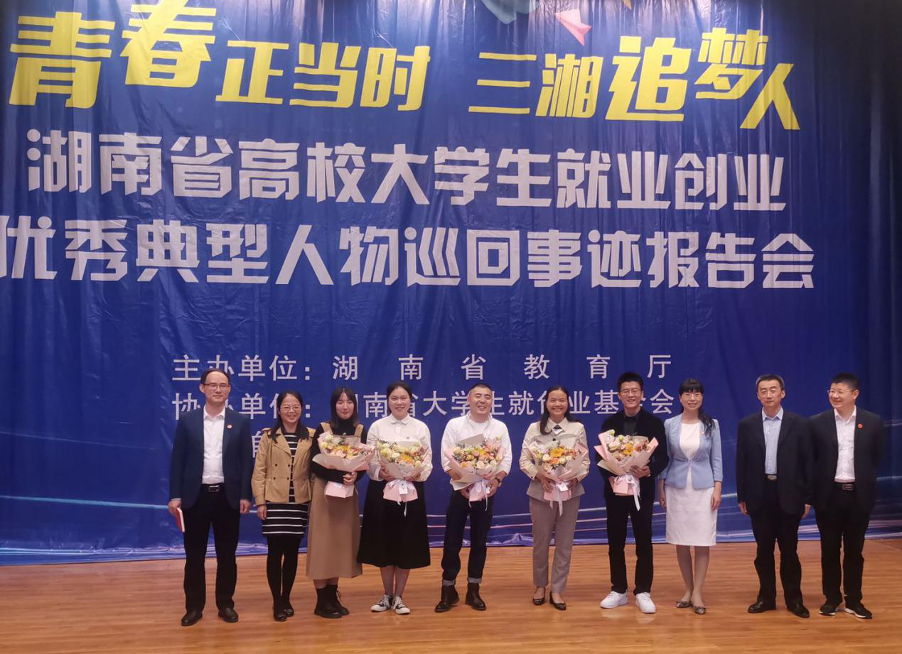 10月27日下午,由省教育厅主办、省大学生就业创业基金会协办,我校承办的“青春正当时 三湘追梦人”湖南省高校大学生就业创业优秀典型人物巡回事迹报告会在我校红湘校区南华礼堂举行。湖南省就业指导中心副主任夏学军,我校党委委员、副校长何旭娟出席,招生就业处处长刘振中主持。