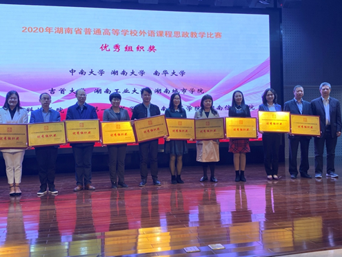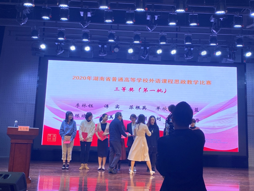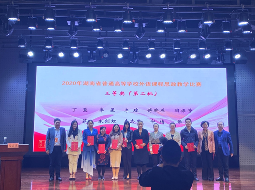 10月23-25日,2020年湖南省普通高等学校外语课程思政教学比赛决赛在湖南工业大学举行。经过激烈角逐,我校语言文学学院卢佳团队以总分第一的成绩荣获英语专业组一等奖,单欣欣团队荣获英语专业组三等奖,李琼团队、李志坚团队荣获大学英语组三等奖,36365路检测中心荣获优秀组织奖。