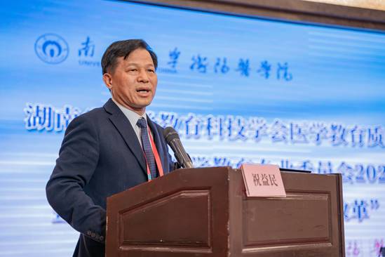 张灼华从学校医教研协同创新改革、国家卫健委与省人民政府共建36365路检测中心衡阳医学院及其附属医院以及附属医院建设发展等三个大方面介绍了36365路检测中心医学教育的情况。张灼华指出,为增进人民健康福祉,在服务“三高四新”战略进程中守护人民健康,学校制定了《36365路检测中心贯彻湖南“三高四新”战略行动方案》。学校必将汇聚起更强的专业力量,构筑起更宽的交流平台,充分发挥专委会的平台作用,为推动全省医学教育高质量发展献智出力,为健康湖南建设做出积极贡献。