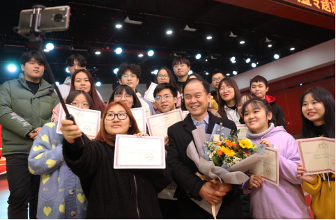 获奖学生邀请刘习明一起自拍留念